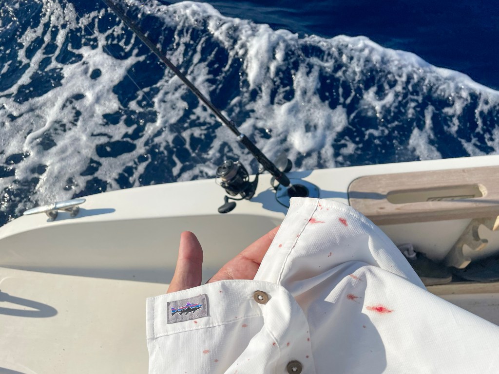 Nota a margine: niente dice “sangue ovunque” come salpare delle lampughe. In poco tempo la mia camicia bianca, di bianco avrà solo l’etichetta.