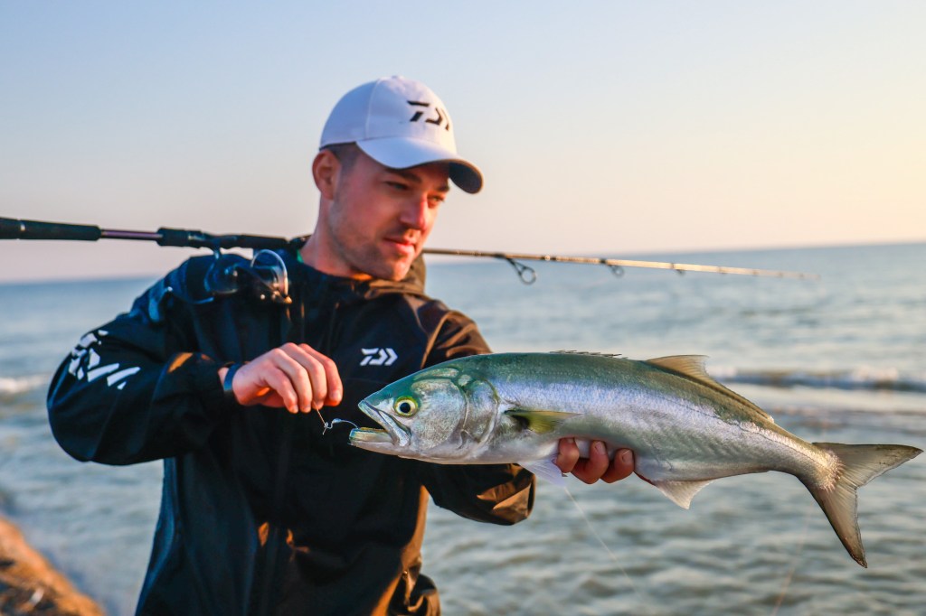 Il serra è un predatore fantastico da affrontare in generale, ma in acqua bassa a pelo sotto la superficie è dove dà il suo massimo: la scia che lascia in partenza ti toglie il fiato e la mangiata è violenta e selvaggia. Vuole tagliare a metà tutto quello che non gli entra completamente in bocca e ti trasmette tutta la sua ferocia già quando è di piccola taglia, ripagandoti per l’alzataccia con le sue acrobazie.