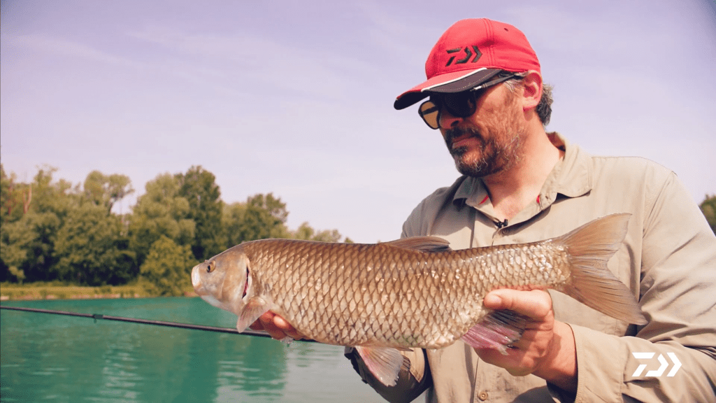 Si inizia la giornata con un po’ di guida e un minimo di drone per raggiungere lo spot di pesca, poi c’è la classica sequenza della preparazione della canne, della pastura e delle esche, seguita da un altrettanto classico vergognoso cappotto immortalato dall’inevitabile gardon. Ci si sposta più a monte di qualche chilometro, arrivando in una piazzola più comoda, con una profondità di quattro metri già a un metro dalla riva.